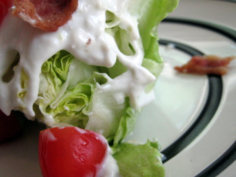 Stir this together – remember, the charm of blue cheese dressing is that is it creamy and chunky at the same time, so do not stir too vigorously, and keep the chunks of blue cheese intact.