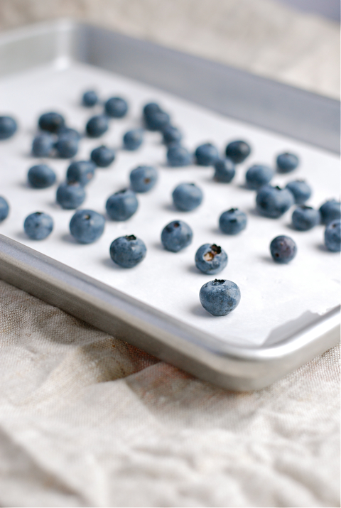 A single layer of blueberries on a sheet pan will also help in preventing them from striking or sticking with each other.