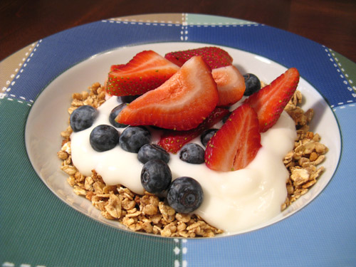 Healthy Yogurt Fruit and Granola Breakfast Recipe