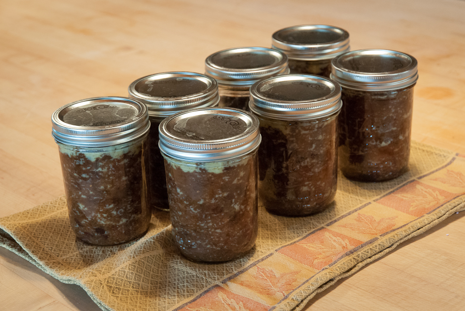 Then, you have to sterilise 30 canning jars (1 for each pint) and their lids. Ladle filling in the jars which you just sterilised. Keep in mind that you have to leave around half inch space before covering the jars with the lids.