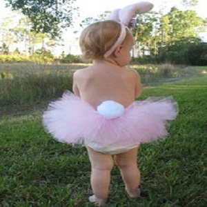 Bugs bunny is a favorite character for baby costumes. Dress your child in a grey sweatshirt. Cut a circle out fo white felt and sew it to the shirt for the tummy of the bunny. Make long bunny ears out of grey felt and sew them to the sweatshirt hood.Here goes your bunny.Hop! Hop!