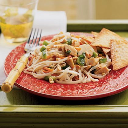 Now add chicken, carrots, green onions, bell pepper and cilantro over the noodles, and toss it to blend all the ingredients together. Pour the dressing over and toss the dish to coat it properly. Sprinkle more broth with the help of tablespoon, while add more salt and pepper according to your taste. Serve as you need.