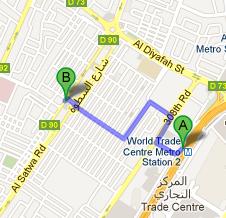 World Trade Centre Metro Station 2 is roughly 1.8 kilometres away from 365 Restaurant. If a person heads from this metro station to 365 Restaurant on feet, he or she can bridge this gap in about 23 minutes approximately. To do so, commuters should head southwest towards 308th Road, then turn right onto 308th Road and afterwards turn left onto 11th Street. After that commuters should turn left onto 26 A Street and this will bring them to another turn on the right that goes onto 19th Street, from where patrons should turn right onto شارع السطوة/D 90 and then turn left towards شارع السطوة/D 90. Later commuters should turn left onto شارع السطوة/D 90 in order to locate the destination on the left. Directions from World Trade Centre Metro Station 2 to 365 Restaurant.