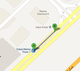 Dubai Marina Tower 1 is a bus stop that is hardly 64 metres away from the Aappa Kadai Restaurant, which makes it a minute's walking journey approximately. To achieve this status bus passenger needs to head in the northeast direction from this bus stop and to reach Dubai Marina Tower 1 bus stop he or she can use bus number F37. Follow the directions on the map.
