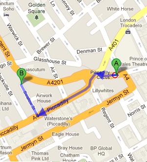The famouse Picadilly Circus underground stop is closest to Freggo and is the best option for travelers. After exiting the station, commuters should head West on Coventry Street. They will then need to turn left onto Piccadilly Circus. This will be followed by a right onto Swallow Street. View Map.