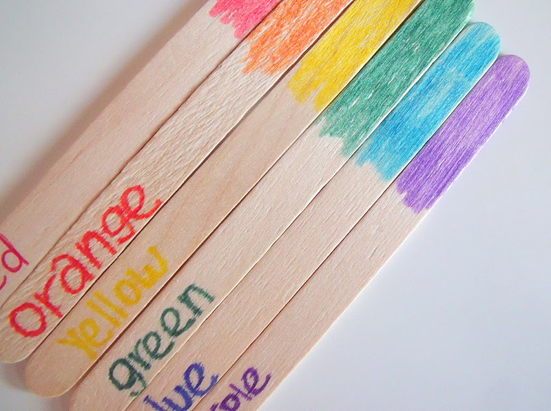 Create a pair of designs using various colours on blank craft sticks. Make 2 or 3 different designs and then ask your child to match the coloured designs one by one.