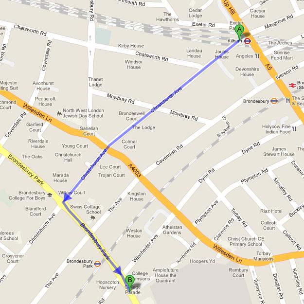 The nearest tube station is Kilburn underground station. Move southwest on Christchurch Ave toward Chatsworth Rd and turn left onto Brondesbury Park. Continue onto Salusbury Rd and the destination will be on your right. View Map