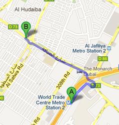 World Trade Centre Metro Station 1 is 2.2 kilometres away from Alkauser Restaurant so it will take a pedestrian about 28 minutes to cover this distance between these two spots. Moreover, pedestrian should follow directions specified below in order to get to this bistro in 28 minutes from World Trade Centre Metro Station 1: