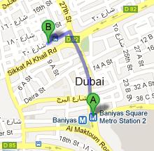 Baniyas Square Metro Station 1 is 10 minutes walk and 750 meters journey from Arabian Desert Tours’ office in Deira, Dubai. To get to this office from Baniyas Square Metro Station 1, patrons should head north on 27th Street towards Al Maktoum Hospital Road, then turn left towards 27th Street and after that make a right turn onto 27th Street. This will bring the patrons to a left turn that goes towards 17th Street, from where pedestrians have to turn left towards 17th Street in order to make another left turn onto 17th Street, so when the 17th Street turns right and becomes 20th Street they will finally reach the destination.