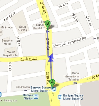 Ashiana Restaurant in Sheraton Dubai Creek Hotel & Towers is just 230 metre away from the nearest metro station called Baniyas Square Metro Station 2. This gap between the two spots can be covered on foot in approximately 3 minutes, if a patron head north on 27th Street towards Al Maktoum Hospital Road, then turn left towards 27th Street and finally make a right turn onto 27th Street to find the destination right in front of him or her. Directions from Baniyas Square Metro Station 2 to Ashiana Restaurant.