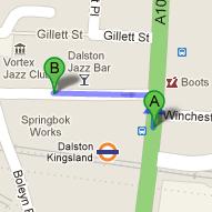 Guests can take a bus to Dalston Kingsland (Stop P), which is the nearest bus stop to this eating place. Guests can cover this distance by walk in about one minute. The direction which bus users will take after arriving at Dalston Kingsland (Stop P) will be north on Kingsland High Street/A10 towards Winchester Pl. From Kingsland High Street/A10 turn left onto Bradbury Street and after covering a distance of 226 ft on foot the guests will find this Asorock Express Restaurant on the right. Following are the bus numbers 67, 76, 149, 243, 488 and N76 that guests can use to get to Dalston Kingsland (Stop P). See the walking directions to Asorock Express Restaurant from Dalston Kingsland (Stop P) for clear view of the route.