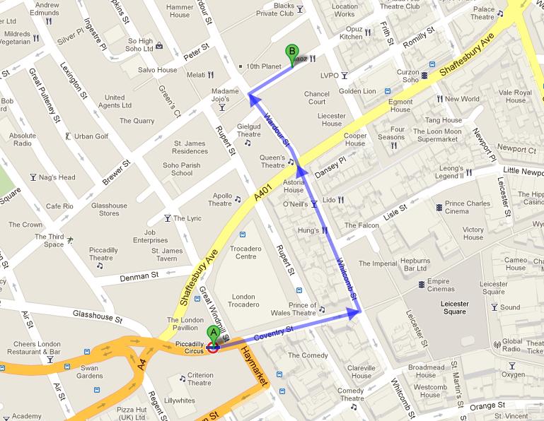From the Piccadilly tube station nearby move East on Coventry St/A4 towards Great Windmill St and keep following Coventry St. Turn left onto Whitcomb St and continue onto Wardour St. Now turn right onto Old Compton St and the hotel will come on your left side. View Map