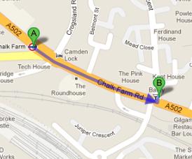 Chalk Farm Underground is 0.2 miles away from Barfly Nightclub. Four minutes walk is required to cover the distance. Come out of the station and head east on Haverstock Hill/A502 towards Adelaide Rd and continue to follow A502. After covering 0.2 miles, turn left onto B517 and your destination will be viewed on the left side of the road. Click here in order to take a look at the route map.