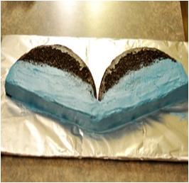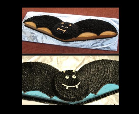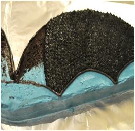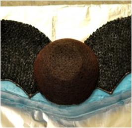 Note: Make sure that the ends of the two pieces of cake are joined together in order to create a bat’s wing look.