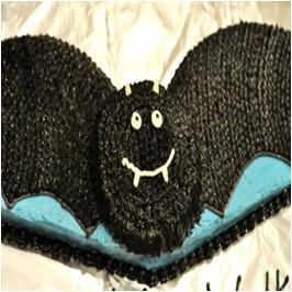 Note: Once again, black frosting is used in this bat cake, but you can use it in any other color that you like.