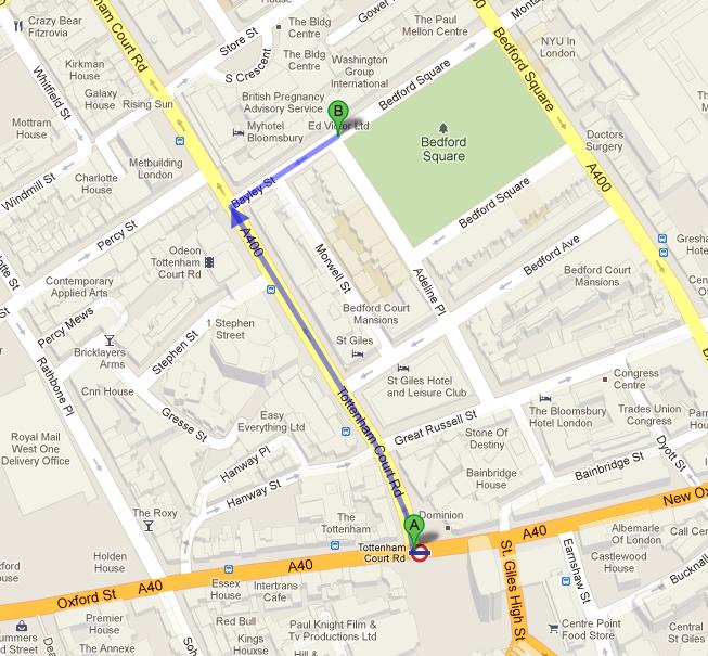 The closest underground station is Tottenham Court Road tube station. From the tube station move north on Tottenham Court Rd/A400 toward Hanway St. Turn right onto B506. The bpas will be on your left side. View Map
