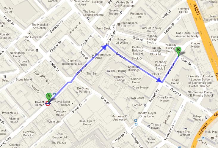 From the nearby Covent Garden tube station move northeast on Long Acre/B402 toward Long Acre/B402. Go through 1 roundabout. Turn right onto Drury Ln. Now, turn left onto Kemble St. You will reach B R B Residuary Ltd. View Map.