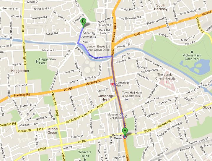 Bethnal Green Tube station is present near the Buen Ayre Restaurant. From the tube station, move north on Cambridge Heath Rd/A107 towards Roman Rd/B119. Take a slight right to stay on Cambridge Heath Rd/A107. Continue to follow A107. Now turn left onto Andrews Rd, and then turn right onto Broadway Market. The restaurant will be on your right side. Click Walking Directions to view a route map from Bethnal Green tube station to the Restauarnt.