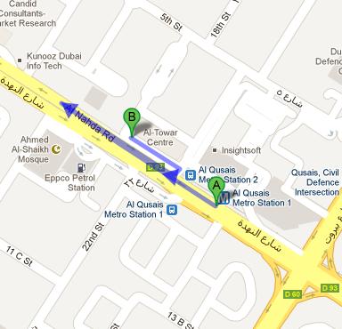 Al Qusais Metro Station 1 is 290 metres away from the Caesars Restaurants & Confectionery and it will take about 4 minutes to finish the journey. All commuters need to do after coming out of this metro station is to head in the northwest direction, after covering a distance of 120 meters take a left and then take a right turn. Directions.