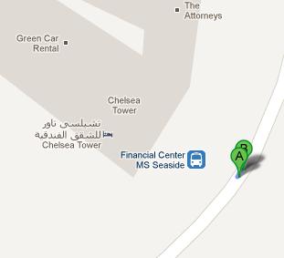 Financial Centre MS Seaside – Dubai is the nearest of all bus stops from Chelsea Tower Suites & Apartments. The gap between these two spots is close to just 3 metres and by walk a bus user can cover it in 2 minutes by heading out in the northeast direction after arriving at this bus station. Use bus number F11 to get to Financial Centre MS Seaside – Dubai. Directions from Financial Center MS Seaside - Dubai to Chelsea Tower Suites & Apartments.
