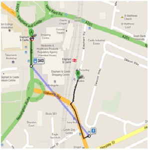 From Elephant & Castle tube station exit towards right, then walk for one minute to Elephant & Castle (Stop R) from where bus number 343 will take you to its next stop at Hampton Street. Then move backwards on Walworth Road and a right turn on Elephant Road will lead you to Corsica Studios. View map.
