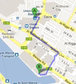 Union Metro Station 1 is 16 minutes walk and 1.3 kilometres journey from Creek Cruises in Deira, Dubai. Patrons of this metro station need to follow these directions, if they want to get to this site from Union Metro Station 1 in 16 minutes: