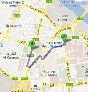 Oud Metha Metro Station 1 is 1.8 kilometres away from Delhi Darbar Restaurant. This makes it a walking journey of about 24 minutes. Commuters of this metro station need to follow these directions in order to reach the Delhi Darbar Restaurant on foot. Head southwest towards 10th Street, then continue straight onto 10th Street and at the roundabout, take the fourth exit onto Umm Hurair Road/D 78. After that take the pedestrian overpass and soon the destination will be seen on the left. Directions from Oud Metha Metro Station 1 to Delhi Darbar Restaurant.