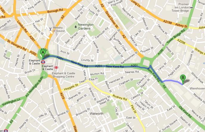 After you get off from the tube at Elephant and Castle tube station, stay on New Kent Road or A 201. Then the New Kent road will turn left and become Mandela way. You will then find the office on your right side. View Map