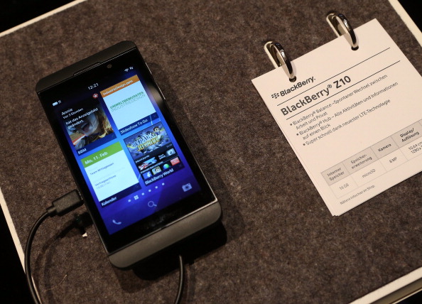 HANOVER, GERMANY – MARCH 05: A Blackberry Z10 smartphone, which is the Germany version of the Blackberry 10, lies on display at the Vodafone stand at the 2013 CeBIT technology trade fair on March 5, 2013 in Hanover, Germany. CeBIT will be open March 5-9. (Photo by Sean Gallup/Getty Images)