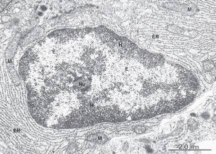 The chromatins are divided into two types, the euchromatin and heterochromatin. The structure and function of these two types of chromatins are quite different. They also differ in their transcription and replication properties.