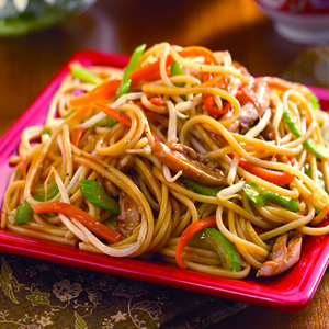 Chow Mein noodles are those which are fried with various ingredients in a wok. Ingredients like chicken and various vegetables are usually prepared separately and are mixed with noodles later on to infuse the flavors when frying. Flavor in the Chow Mein dish comes from the vegetables in it rather than the complimenting sauce.