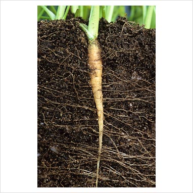 Tap root system consist of a main root, with smaller auxiliary roots growing laterally around it. This root system goes deep inside the ground and its path is merely blocked with rocks or any other hard debris in the soil. Carrot, reddish and parsnip are the examples of tap roots which are relatively shorter in length and not quite like the typically long tap roots. This root system tends to break up the subsoil and this brings the unconsumed soil nutrients closer up to the surface, making the soil more fertile for other plants to grow.