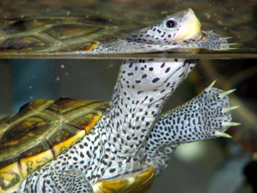 These are strong swimmers by nature and have webbed limbs to aid their efforts. Their teeth are also very strong and can crush the shells of other animals when they prey on them. They themselves have a shell which is quite strong and is a defence mechanism against predators.