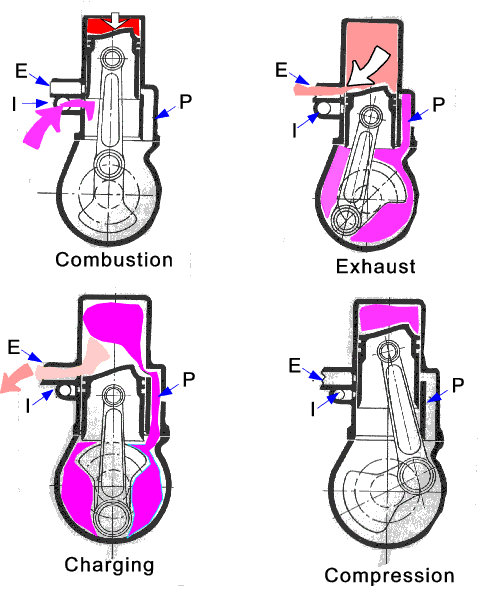 In the two stroke engine, there also occur the phenomena of carbon deposit accumulation and expulsion of fresh combustible charge through the exhaust port.