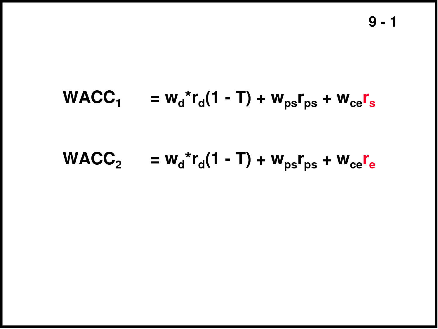 WACC = (E / V) × Re + (D / V) × Rd × (1 – Tc)