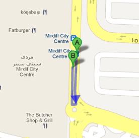 Mirdiff City Centre 2 – Dubai bus stop will best suit bus users who want to reach Duck King Restaurant, as this station is hardly at a distance of 400 metres and 5 minutes walking distance. Therefore, if a person uses bus number F10 he or she can easily reach this bus station, from where they need to head south and then at the roundabout, take the first exit to find the destination just a few metres away. Directions from Mirdiff City Centre 2 – Dubai to Duck King Restaurant.