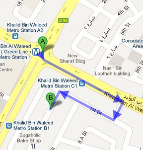 Khalid Bin Al Waleed Metro Station 1 is located at 11 minutes walking distance from Govinda’s Restaurant, as it just 850 metres away. So commuters can easily get to this bistro from Khalid Bin Al Waleed Metro Station 1, if they head in the south course towards Sheikh Khalifa Bin Zayed Street/D 88, then turn slight left onto Khalid Bin Al Waleed Road/D 79, before making a right turn towards 1st Street, after which patrons should turn right onto 1st Street and then turn left onto 4 A Street in order to locate the destination on the right side.