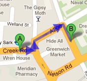 Bus is another very viable option to reach Greenwich Market, as Greenwich Town Cen Cutty Sark (Stop D) is situated just 13 feett away from it and by walk one can easily cover this gap in 2 seconds roughly. If a visitor heads northwest on King William Walk/A206 towards College Approach and the bus number that can lead you to this bus stop is 286. Directions from Greenwich Town Cen Cutty Sark (Stop D) to Greenwich Market.