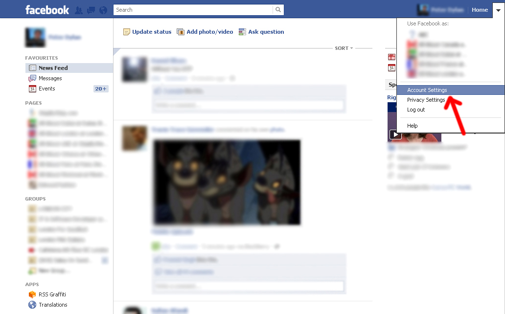 Once you are signed in, click on the arrow pointing downwards alongside the Home button on the top of the page. Click on Account Settings to proceed.