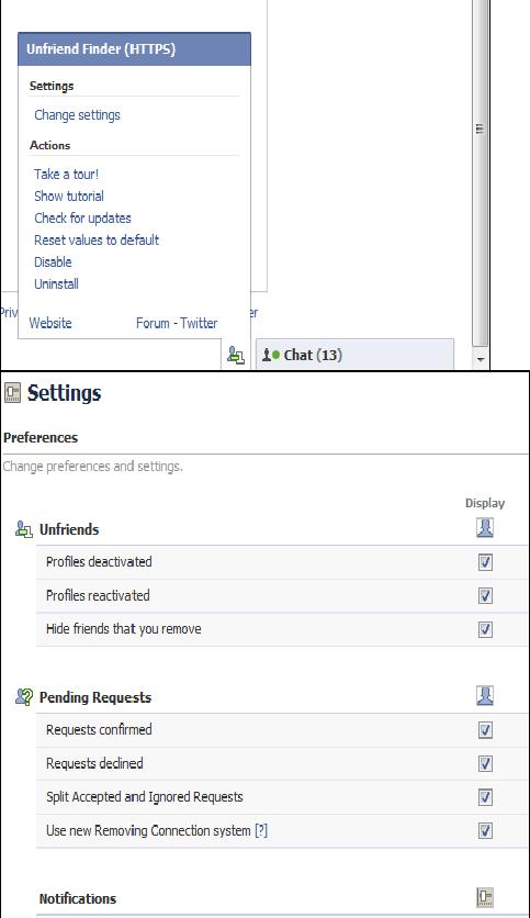 You can also manage the script settings. All you need to do is just click the unfriend tab located at the right bottom of your screen. Click the Change Settings tab, and it will open the settings page. Make the settings according to your requirement like editing the tracking system or changes in notifications etc.