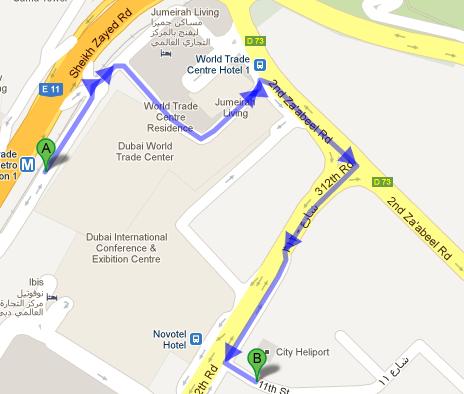 World Trade Centre Metro Station 1 is the nearest metro station to Helidubai. It is 1.6 km away from Helidubai, and by walk it takes around 20 minutes to reach there. Head northeast and take a slight left toward D 73. Now turn right toward D73 and take another left on the same road. Turn right onto 312th Rd, and take slight left toward 11th St. Take a final left turn onto 11st St, and you will easily locate your required destination.