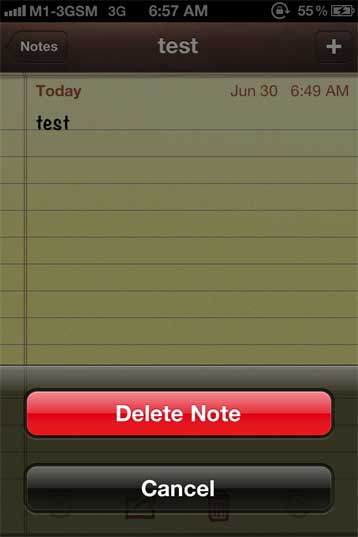 If you want to delete a note which you feel you no longer need or is surplus to requirements, all you have to do is swipe your finger over the title of that note on the home screen of the application. This will show a delete button pop up on the right and clicking it will see the note get deleted off of your handset.