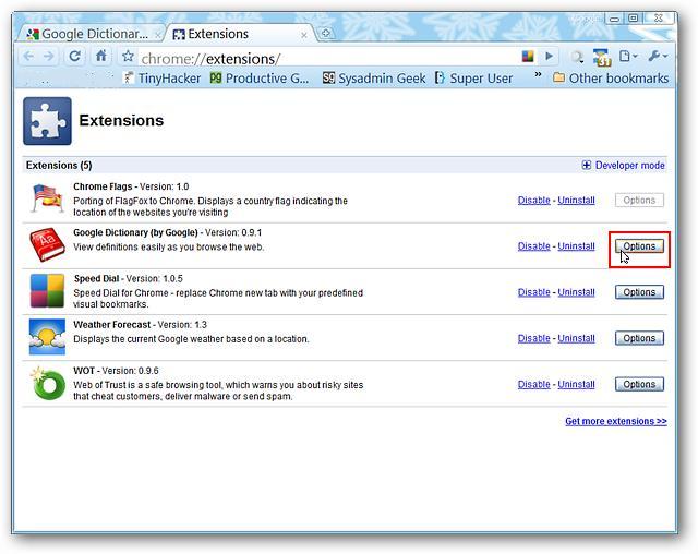 There are three procedures in order to access the options for the extension. The first is the “Chrome Extensions Page”