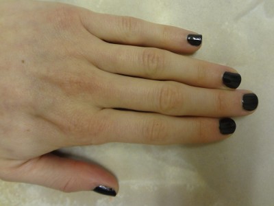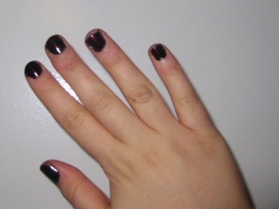 Never forget to apply a transparent black nail polish over the coat of the opaque colour. This will make your nails shine black in light, however it will show the opaque colour the rest of the time. Apply double coat of clear nail polish.