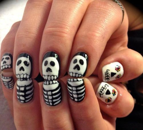 You can embellish your nail by making any desired design onto them. You can try making a spider web by using a toothpick. Dip a toothpick into white nail paint and make fine lines in a way that it looks like a web pattern. Let the design dry then apply clear polish over it.