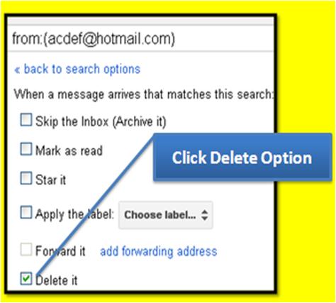 Fill in the unwanted sender’s email address right in front of the “From” option and the hit the "Create a Filter with this Search" link.