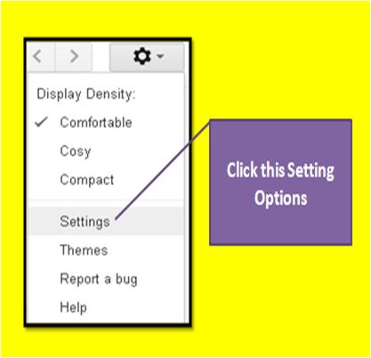 Once your Gmail Account is open, find the “gear icon” on the top right corner of the page and click the drop down menu in order to view the options.