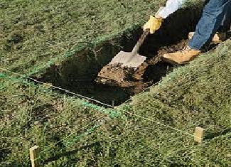 Once the entire line is marked, check it again for right alignment and if its not rightly aligned then correct the line again. Now dig out about 10 inch deep trench with a shovel.