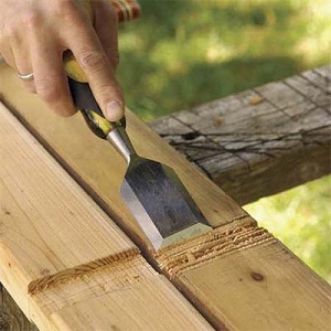 Use a chisel to make notch points in the vertical posts so that the horizontal ones fit in snugly. Do this for all the points you marked. Of course the notches you make should fit the dimensions of the horizontal posts.