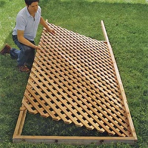 However, if you want to make the lattice yourself, use pressure treated lumber pieces cut to the size of the frame you want. Lay the vertical ones on the ground and top with horizontal ones to make the pattern. Join with nails or screws at every intersection.